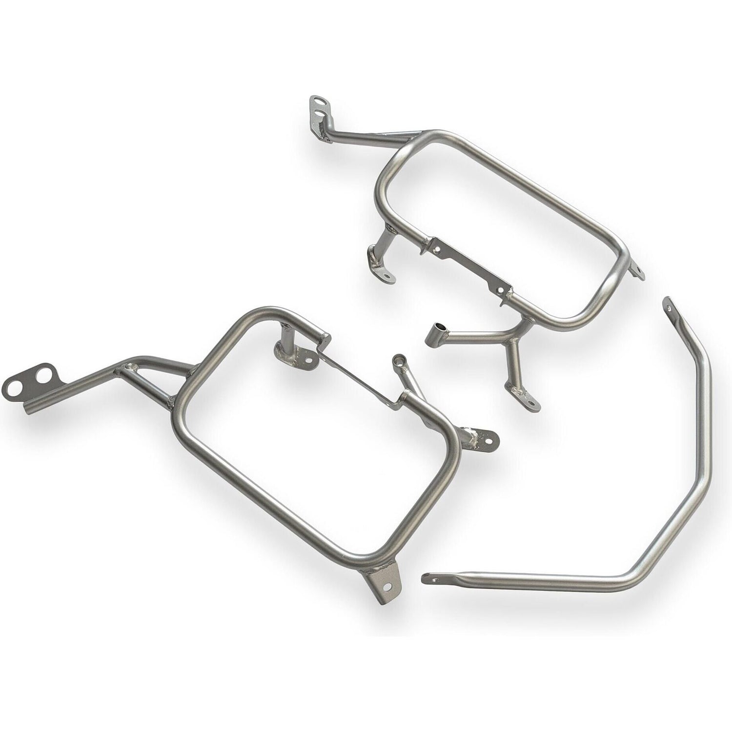 Inox steel side tubes for aluminum side bags, to ensure a proper loading capability, in safe and stability during long range & extreme ride conditions.